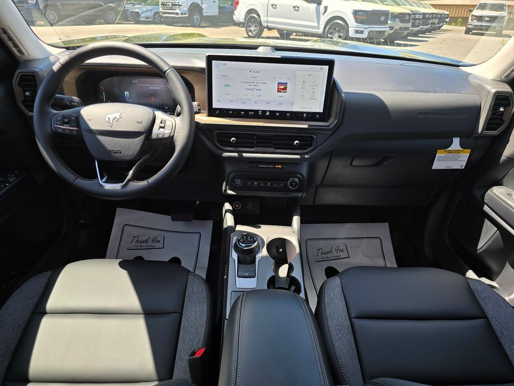 Check out all these great optionsBlack Diamond Off-Road Package (400W Pro Power Onboard, Auxiliary Switches and Wiring, Front Black Molded-in-Color (MIC) Bumper, Front Brush Guard, and Wheels: 17" Carbonized Gray-Painted Aluminum), Bronze + Black Diamond Off-Road Package (All Weather Floor Liners with Bronze Accents, Body-Color Door Handles, Bronze Badges, Bronze Fender Vent, Cargo Mat with Bronze Accents, Front Driver/Passenger Seat Back Map Pockets, Painted Shadow Black Roof, Premium Trimmed Front Sport Contour Bucket Seats, Premium Wrapped Steering Wheel, and Wheels: 17" Sinister Bronze-Painted Aluminum), Class II Trailer Tow Package with Trailer Sway Control, Convenience Package (Heated 8-Way Power Driver's Seat and LED Fog Lamps), Equipment Group 200A Standard Package (AM/FM Stereo, Cloth with Easy-to-Clean Front Bucket Seats, SiriusXM with 360L, SYNC 4 with Enhanced Voice Recognition, and Wheels: 17" Carbonized Gray Painted Aluminum), Ford Connectivity Package (1-Year Included), Internet access capable: 5G Modem - Ford Connectivity Package, 2nd Row Carpeted Seatback, 4-Wheel Disc Brakes, 6 Speakers, ABS brakes, Air Conditioning, Alloy wheels, AM/FM radio: SiriusXM with 360L, Apple CarPlay/Android Auto, Auto High-beam Headlights, Automatic temperature control, Brake assist, Carbon Black Grille with Black Painted BRONCO Lettering, Compass, Delay-off headlights, Driver door bin, Driver vanity mirror, Dual front impact airbags, Dual front side impact airbags, Electronic Stability Control, Emergency communication system: SYNC 4 911 Assist, Exterior Parking Camera Rear, Four wheel independent suspension, Front anti-roll bar, Front Bucket Seats, Front Center Armrest, Front License Plate Bracket, Front reading lights, Fully automatic headlights, Heated door mirrors, Illuminated entry, Knee airbag, Liftgate with Black BRONCO SPORT Lettering, Low tire pressure warning, Occupant sensing airbag, Outside temperature display, Overhead airbag, Overhead console, Panic alarm, Passenger door bin, Passenger vanity mirror, Power door mirrors, Power steering, Power windows, Radio data system, Rear anti-roll bar, Rear Parking Sensors, Rear reading lights, Rear seat center armrest, Rear window defroster, Rear window wiper, Remote keyless entry, Security system, Speed control, Speed-sensing steering, Speed-Sensitive Wipers, Split folding rear seat, Steering wheel mounted audio controls, Tachometer, Telescoping steering wheel, Tilt steering wheel, Traction control, Trip computer, and Variably intermittent wipers. Recent Arrival! 25/30 City/Highway MPG