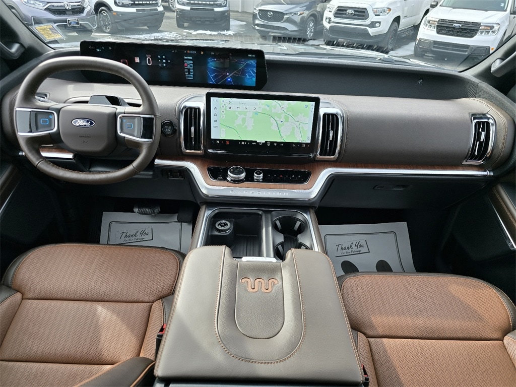Check out all these great optionsEquipment Group 400A (3.73 Axle Ratio, Digital Device Holder, Heated/Ventilated Premium Del Rio Leather Front Captain's Chairs, and Wheels: 22" x 9.0" Diamond Cut Machined Face Aluminum), Ford Connectivity Package (1-Time Purchase), Ford Connectivity Package (1-Year Included), 22 Speakers, 3rd row seats: split-bench, 4-Wheel Disc Brakes, ABS brakes, Adaptive suspension, Adjustable pedals, Air Conditioning, Alloy wheels, AM/FM radio: SiriusXM with 360L, Apple CarPlay/Android Auto, Auto High-beam Headlights, Auto-dimming door mirrors, Auto-dimming Rear-View mirror, Automatic temperature control, Brake assist, Bumpers: body-color, Compass, Delay-off headlights, Driver door bin, Driver vanity mirror, Dual front impact airbags, Dual front side impact airbags, Electronic Stability Control, Emergency communication system: 911 Assist, Exterior Parking Camera Rear, Ford Digital Experience, Four wheel independent suspension, Front anti-roll bar, Front Bucket Seats, Front Center Armrest, Front dual zone A/C, Front License Plate Bracket, Front reading lights, Fully automatic headlights, Garage door transmitter, Genuine wood dashboard insert, Genuine wood door panel insert, Heated door mirrors, Heated front seats, Heated rear seats, Heated steering wheel, Illuminated entry, Leather steering wheel, Low tire pressure warning, Memory seat, Navigation System, Occupant sensing airbag, Outside temperature display, Overhead airbag, Overhead console, Panic alarm, Passenger door bin, Passenger vanity mirror, Pedal memory, Power door mirrors, Power driver seat, Power moonroof: Vista Roof, Power passenger seat, Power steering, Power windows, Radio data system, Radio: B&O Unleashed Sound System by Bang & Olufsen, Rain sensing wipers, Rear air conditioning, Rear anti-roll bar, Rear reading lights, Rear window defroster, Rear window wiper, Reclining 3rd row seat, Remote keyless entry, Security system, SiriusXM with 360L, Speed control, Speed-sensing steering, Speed-Sensitive Wipers, Split folding rear seat, Spoiler, Steering wheel memory, Steering wheel mounted audio controls, Tachometer, Telescoping steering wheel, Tilt steering wheel, Traction control, Trip computer, Turn signal indicator mirrors, Variably intermittent wipers, Ventilated front seats, and Voltmeter. Recent Arrival!