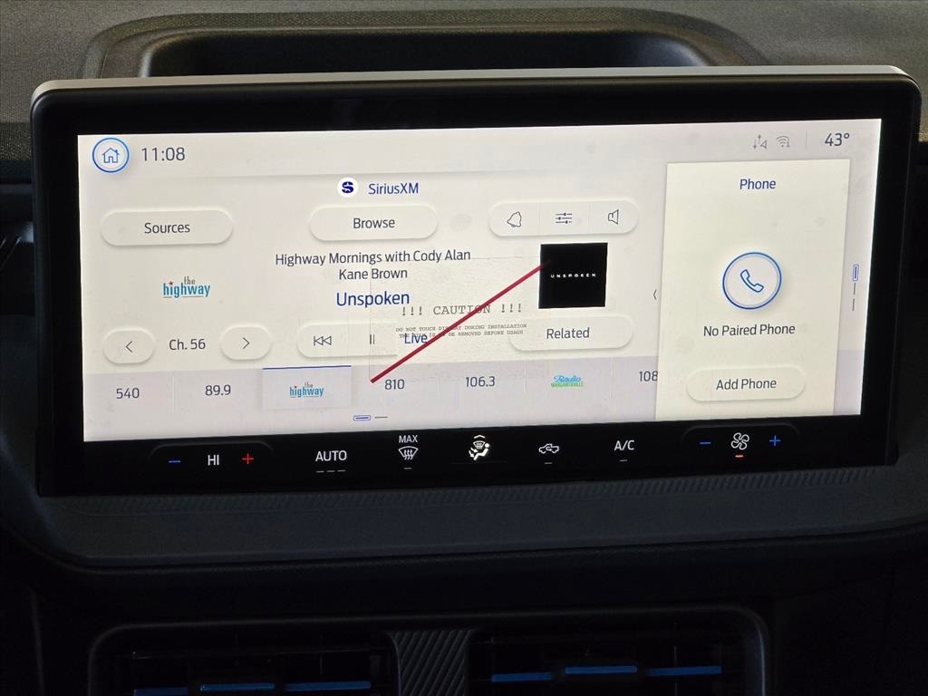 Check out all these great optionsEquipment Group 402A Standard (3.63 Axle Ratio, ActiveX Trimmed Front Bucket Seats, Radio: AM/FM Stereo with 6 Speakers, SiriusXM with 360L, SYNC 4 with Enhanced Voice Recognition, and Wheels: 19" Turbofan-Stuled Black Painted Aluminum), Ford Connectivity Package (1-Year Included), Internet access capable: 5G Modem - Ford Connectivity Package, 4-Wheel Disc Brakes, 6 Speakers, ABS brakes, Air Conditioning, Alloy wheels, AM/FM radio: SiriusXM with 360L, Apple CarPlay/Android Auto, Auto High-beam Headlights, Automatic temperature control, Brake assist, Bumpers: body-color, Compass, Delay-off headlights, Driver door bin, Driver vanity mirror, Dual front impact airbags, Dual front side impact airbags, Electronic Stability Control, Emergency communication system: SYNC 4 911 Assist, Exterior Parking Camera Rear, Four wheel independent suspension, Front and Rear Floor Liners Without Carpet Mats, Front anti-roll bar, Front Bucket Seats, Front Center Armrest, Front fog lights, Front reading lights, Fully automatic headlights, Illuminated entry, Knee airbag, Low tire pressure warning, Occupant sensing airbag, Outside temperature display, Overhead airbag, Overhead console, Panic alarm, Passenger door bin, Passenger vanity mirror, Power door mirrors, Power driver seat, Power Moonroof, Power steering, Power windows, Radio data system, Rear anti-roll bar, Rear Parking Sensors, Rear seat center armrest, Rear step bumper, Remote keyless entry, Security system, Speed control, Speed-sensing steering, Steering wheel mounted audio controls, Tachometer, Telescoping steering wheel, Tilt steering wheel, Tough Bed Spray-in Bedliner, Traction control, Trip computer, and Wheels: 19" Black Painted Aluminum. 21/30 City/Highway MPG