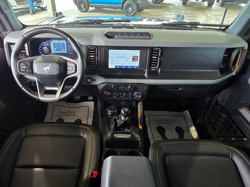 Check out all these great optionsABS brakes, Compass, Heated door mirrors, Illuminated entry, Low tire pressure warning, Remote keyless entry, Traction control, 4-Wheel Disc Brakes, 6 Speakers, Air Conditioning, AM/FM radio: SiriusXM with 360L, AM/FM Stereo, Auto High-beam Headlights, Brake assist, Delay-off headlights, Driver door bin, Driver vanity mirror, Dual front impact airbags, Dual front side impact airbags, Emergency communication system: 911 Assist, Exterior Parking Camera Rear, Front anti-roll bar, Front Bucket Seats, Front Center Armrest, Front reading lights, Front wheel independent suspension, Fully automatic headlights, Integrated roll-over protection, Occupant sensing airbag, Outside temperature display, Overhead airbag, Overhead console, Panic alarm, Passenger door bin, Passenger vanity mirror, Power door mirrors, Power steering, Power windows, Radio data system, Security system, SiriusXM Radio w/360L, Speed control, Split folding rear seat, Steering wheel mounted audio controls, SYNC 4, Tachometer, Telescoping steering wheel, Tilt steering wheel, Trip computer, and Variably intermittent wipers. Area 51 2021 Ford Bronco Badlands 4WD 7-Speed Manual 2.3L EcoBoost I-4 ABS brakes, Compass, Heated door mirrors, Illuminated entry, Low tire pressure warning, Remote keyless entry, Traction control.