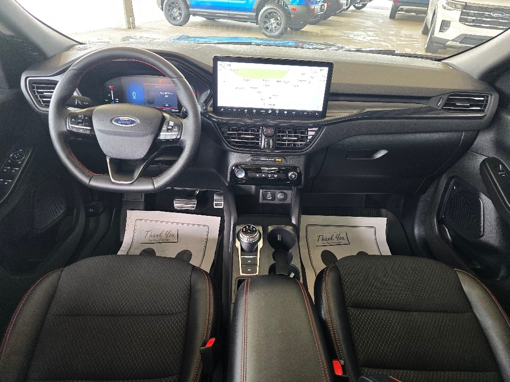 Check out all these great optionsCold Weather Package (Heated Front Row Seats, Heated Sideview Mirrors, Heated Steering Wheel, and Remote Starter System), Equipment Group 300A, Tech Pack #1 (Adaptive Cruise Control w/Stop-and-Go, Connected Navigation, Ford Co-Pilot360 Assist+, Rear Parking Sensor, Rear-View Camera, Speed Sign Recognition, and SYNC 4 w/Enhanced Voice Recognition), 3.81 Axle Ratio, 4-Wheel Disc Brakes, 6 Speakers, ABS brakes, Air Conditioning, Alloy wheels, AM/FM radio: SiriusXM, AM/FM Stereo, Auto High-beam Headlights, Automatic temperature control, Black Roof-Rack Side Rails, Brake assist, Bumpers: body-color, Compass, Delay-off headlights, Driver door bin, Driver vanity mirror, Dual front impact airbags, Dual front side impact airbags, Electronic Stability Control, Emergency communication system: SYNC 4 911 Assist, Exterior Parking Camera Rear, FordPass Connect, Four wheel independent suspension, Front anti-roll bar, Front Bucket Seats, Front Center Armrest, Front dual zone A/C, Front reading lights, Fully automatic headlights, Illuminated entry, Knee airbag, Low tire pressure warning, Occupant sensing airbag, Outside temperature display, Overhead airbag, Overhead console, Panic alarm, Panoramic Vista Roof, Passenger door bin, Passenger vanity mirror, Power door mirrors, Power driver seat, Power Liftgate, Power steering, Power windows, Radio data system, Rear anti-roll bar, Rear reading lights, Rear seat center armrest, Rear window defroster, Rear window wiper, Remote keyless entry, Roof rack: rails only, Speed control, Speed-sensing steering, Speed-Sensitive Wipers, Split folding rear seat, Spoiler, Sport steering wheel, Steering wheel mounted audio controls, SYNC 4, Tachometer, Telescoping steering wheel, Tilt steering wheel, Traction control, Trip computer, Variably intermittent wipers, Vinyl/Cloth Front Sport Contour Bucket Seats, and Wheels: 18" Rock Metallic Painted Aluminum. CARFAX One-Owner. Carbonized Gray Metallic 2024 Ford Escape ST-Line FWD 8-Speed Automatic 1.5L EcoBoost