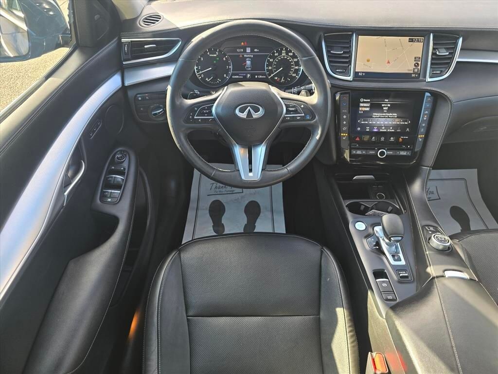 Inside, you'll be surrounded by premium materials and thoughtful amenities. The leather-wrapped steering wheel, heated front seats, and dual-zone automatic climate control ensure your comfort, while the INFINITI InTouch Navigation system and Apple CarPlay/Android Auto integration keep you connected and in control.